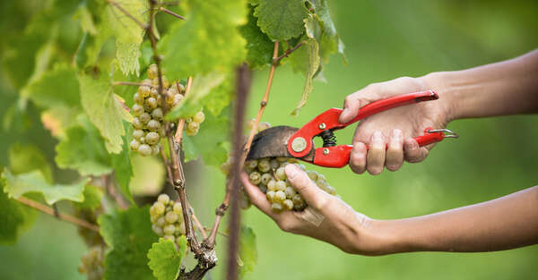 Weinreben tragen ihre Blüten und Früchte ausschließlich an den neuen Trieben. Im Weinbau werden die Reben an Drahtspalieren gezogen und im Winter stark eingekürzt. Dabei werden nur von einem oder zwei der kräftigsten letztjährigen Trieben ein ca. einen Meter langes Triebstück stehen gelassen. In der kommenden Saison wachsen dann die neuen Triebe aus den sogenannten schlafenden Augen. Der starke Rückschnitt wird natürlich vornehmlich im Weinbau gemacht und weniger im Hobbygarten. Hier geht es um Qualitätssteigerung durch Ertragsreduzierung: Die Weintrauben werden kräftiger, da die Pflanze durch den Rückschnitt nur wenige Fruchttriebe ernähren muss. Im Sommer folgt ein weiterer Schnitt: Ein Teil der Fruchtansätze wird herausgeschnitten, um die Größe und die Süße, also den Zuckeranteil der übrigen Trauben nochmals zu steigern.